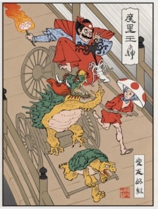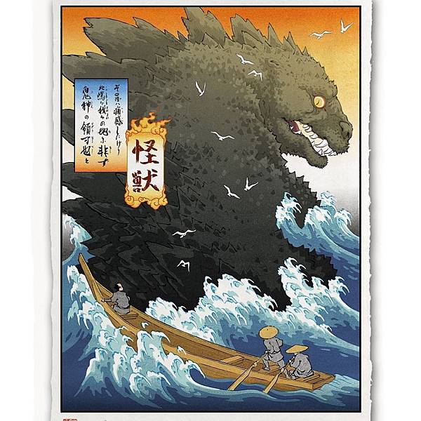 美國的畫家Jed Henry巧妙地將浮世繪和當代流行元素結合,從他的畫中可以看到身著古裝的漁民遇上哥吉拉;瑪利歐乘著手拉車,和大魔王庫巴 https://goo.gl/dvCgs3