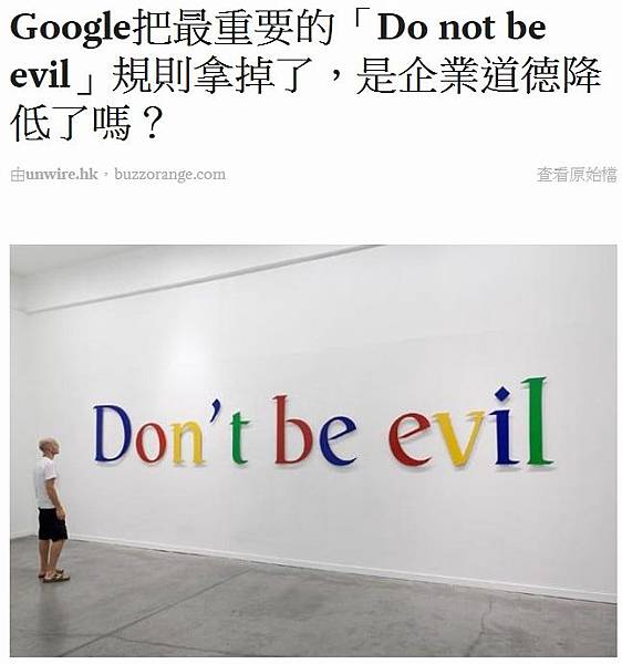 (本文經合作夥伴UNWIRE HK授權轉載,並同意TechOrange編寫導讀與修訂標題,原文標題為< Google從行為守則移除大部分「不作惡」字眼 。)