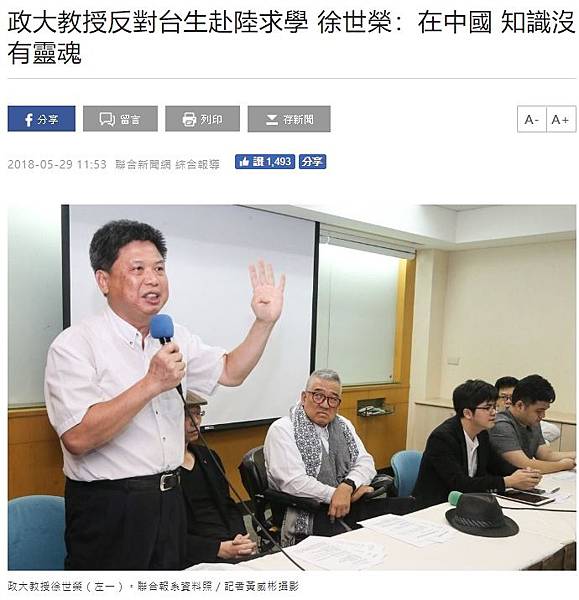 政大教授反對台生赴陸求學 徐世榮:在中國 知識沒有靈魂