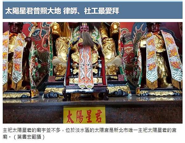 主祀太陽星君的廟宇並不多,位於淡水區的太陽宮是新北市唯一主祀太陽星君的宮廟。(葉書宏翻攝)