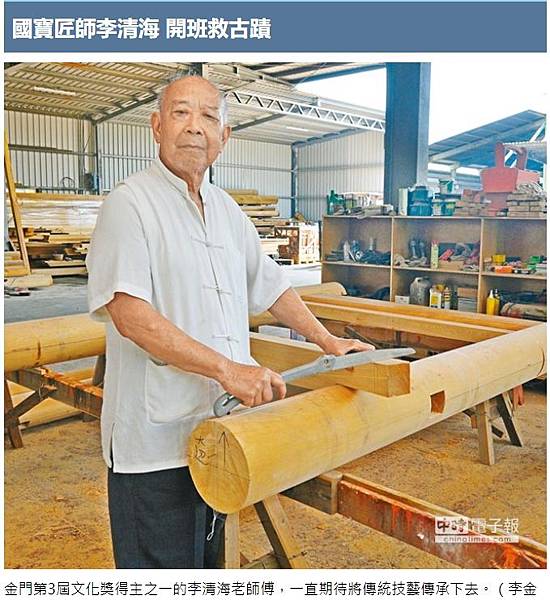 金門7大傳統聚落的紅磚古厝、宗祠群,在歲月的更迭下,已經一棟棟相繼斑駁傾圮。從事古蹟修復50年,第3屆金門文化獎得主之一的國寶級大匠師李清海,用大半輩子的時間搶救這些烙印歷史痕跡的老建築,並應邀開班授課,希望將源自泉州「原鄉」的專業工藝,一代代的傳承下去。