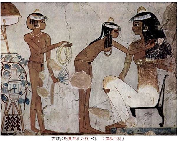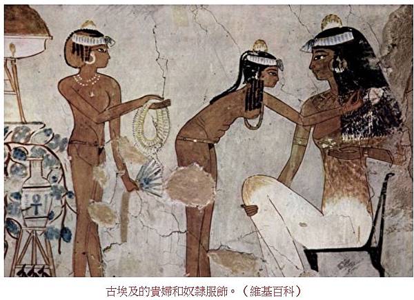 古埃及的貴婦和奴隸服飾。(維基百科)