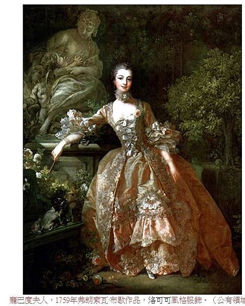 龐巴度夫人,1759年弗朗索瓦·布歇作品,洛可可風格服飾。(公有領域)