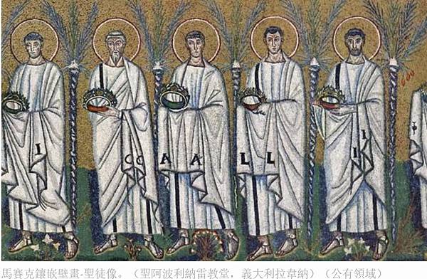 馬賽克鑲嵌壁畫-聖徒像。(聖阿波利納雷教堂,義大利拉韋納)(公有領域)