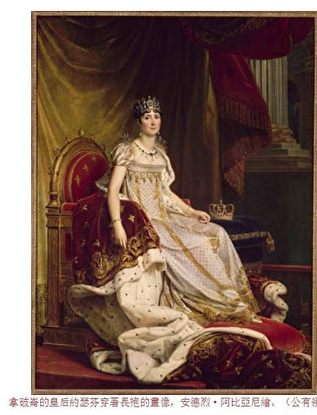 拿破崙的皇后約瑟芬穿著長袍的畫像,安德烈·阿比亞尼繪。(公有領域)