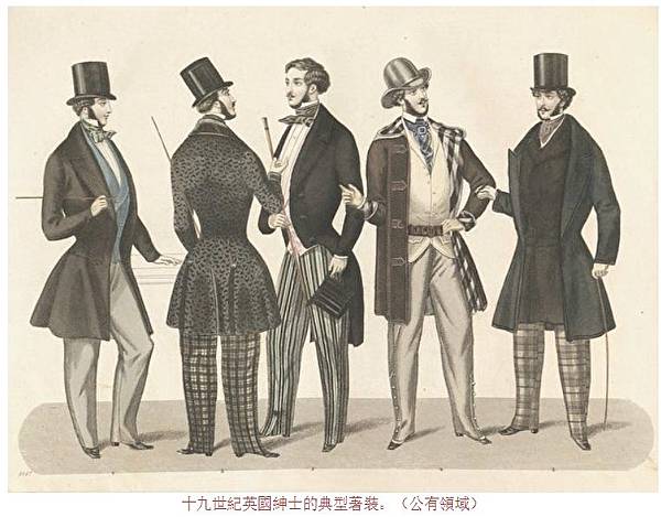 男性的服裝基本上沿襲三件式的樣式,常在電影或電視中見到的英國紳士的形象,就是這個時代典型的穿著。