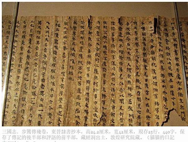 三國志.步騭傳殘卷,東晉隸書抄本,高24.2厘米,寬42厘米,現存25行,440字,保存了傳記的後半部和評語的前半部,藏經洞出土,敦煌研究院藏。(貓貓的日記本/Wikimedia Commons)