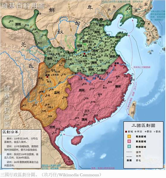三國行政區劃分圖。(玖巧仔/Wikimedia Commons)
