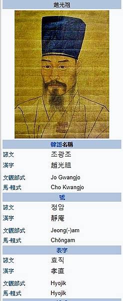趙光祖(조광조,1482年8月10日-1519年12月20日),字孝直,號靜庵,是16世紀朝鮮王朝的著名思想家及政治家,改革家。他在士林派的領首同己卯士禍中被朝鮮君主中宗賜死,後來在仁宗登位後獲平反,諡號文正。金宏弼·柳崇祖的門人。