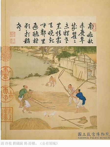 清 冷枚 耕織圖 冊-持穗。(公有領域)