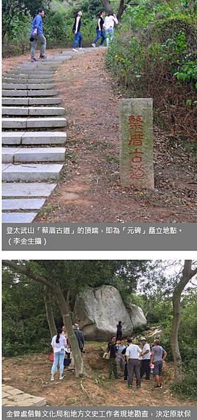 登太武山「蔡厝古道」的頂端,即為「元碑」矗立地點。(李金生攝)