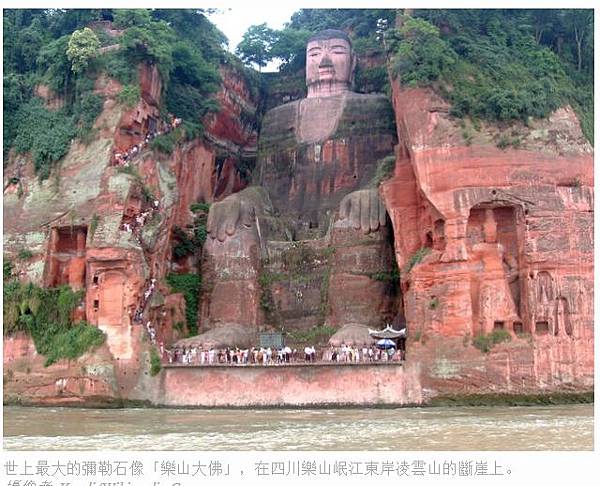 世上最大的彌勒石像「樂山大佛」,在四川樂山岷江東岸凌雲山的斷崖上。