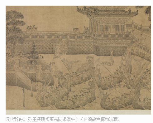 元代龍舟。元‧王振鵬《萬民同樂端午》(台灣故宮博物院藏)