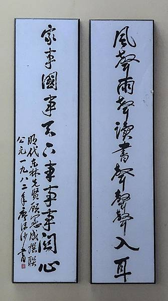 「風聲、雨聲、讀書聲,聲聲入耳﹔家事、國事、天下事,事事關心」,