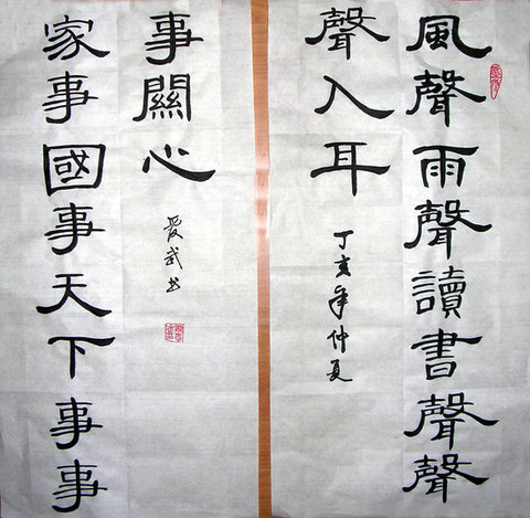 「風聲雨聲讀書聲,聲聲入耳;家事國事天下事,事事關心」