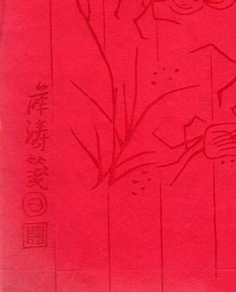 談薛濤箋 薛濤箋產生於唐代。唐代名箋紙,又名“ 浣花箋 ”。亦名“ 松花箋 ”、“ 減樣箋 ”、“ 紅箋 ”。唐代詩人李賀有詩云:“浣花箋紙桃花色,好好題詞詠玉鉤。”北宋蘇易簡《文房四譜》云:“元和之初(九世紀初葉),薛濤尚斯色,而好制小詩,惜其幅大,不欲長,乃命匠人狹小為之。蜀中才子既以為便,後裁諸箋亦如是,特名曰薛濤焉。”又說:“府城(指成都)之南五里有百花潭,支流為一,皆有橋焉。其一王溪,其一薛濤,以紙為業者家其旁。……以浣花潭水造紙故佳,其亦水之宜也。”從這些記載中可知,“薛濤箋”的形制是紅色小幅詩箋,九世紀初造於成都郊外浣花溪的百花潭。這种红色小箋曾被薛濤用以寫詩與元稹、白居易、杜牧、劉禹錫等人相唱和,因而名著於文壇,乃濤設計“命匠人狹小為之”。薛濤箋雖只深紅一色,但顏色、花紋甚精巧鮮麗。薛濤箋在我國製箋發展史上,佔有重要地位,後歷代均有仿製。宋代發展了胭脂版紙箋也稱薛濤箋,用產於嘉州(今四川樂山縣)的胭脂樹花染色。宋人詩曰:“名得只從嘉郡樹,樣傳仍自薛濤時。”明宋應星《天工開物》認為:“其美在色”。相傳薛濤箋是由“浣花溪的水,木芙蓉的皮,芙蓉花的汁”製作而成。編輯本段薛濤制箋緣由 薛濤,唐朝女詩人。其父為宮廷樂官,安史之亂入蜀逃避戰禍,定居成都。薛濤幼年喪父,生活無著,落入娼籍。早年居成都浣花溪,善製詩箋。蜀中產紙甚佳,制以為箋,早有盛名,杜甫已有“ 蜀箋染翰光”詩句,這句詩是為高適而言,高適時在蜀西為官。成都浣花溪自來就是產箋之地,屢見於記載 ,唐末韋莊有《乞彩箋歌》也說:“浣花溪上如花客,綠閣深藏人不識。留得溪頭瑟瑟波,潑成紙上猩猩色。”就是指薛濤在浣花溪制箋。明朝何宇度《益部談資》說“蜀箋古已有名,至唐而後盛,至薛濤而後精。”明哲學詮《蜀中名勝記》及萬曆刻本“薛濤小傳”都說薛濤僑居百花潭,東制深紅小彩箋。詩歌唱和,多是一張紙上寫一首律詩或絕句,但當時的紙張尺寸較大,以大紙寫小詩,浪費倒不要緊,要緊的是不和諧、不好看。薛濤便讓造紙工匠特地改小尺寸,做成小箋,自己又發明了新奇的染色技法,能染出深紅、粉紅、明黃等十種顏色,這就是所謂的“十樣變箋”,這不是普通的信箋,而是專門的詩箋。據《唐音要生》載:詩箋始薛濤,濤好制小詩,惜紙長剩,命匠狹小之,時謂便,因行用。其箋染演作十色,故詩家有十樣變箋之語。《牧豎閒談》載:澆花人多造十色彩箋,於是薛濤另模新樣,小幅松花紙,多用題詩。《往都談資》載:花箋古已有名,至唐而後盛,至薛詩而後 精。編輯本段特點 據載:薛待用毛筆或毛刷把小紙塗上紅色的雞冠花、荷花及不知名的紅花,將花瓣搗成泥再加清水,經反复實驗,從紅花中得到染料,並加進一些膠質調勻,塗在紙上,一遍一遍地使顏色均勻塗抹。再以書夾濕紙,用吸水麻紙附貼色紙,再一張張疊壓成摞,壓平陰乾。由此解決了外觀不勻和一次製作多張色紙的問題。薛濤用自己設計的塗刷法,做出了小彩箋。為了變花樣,還將小花瓣灑在小箋上,製成了紅色的彩箋。薛濤使用的塗刷加工製作色紙的方法,與傳統的浸漬方法相比,有省料、加工方便、生產成本低之特點,類似現代的塗佈加工工藝。編輯本段顏色分類 薛濤名箋有十種顏色:深紅、粉紅、杏紅、明黃、深青、淺青、深綠、淺綠、銅綠、殘雲。何以特喜紅色,一般認為紅是快樂的顏色,它使人喜悅興奮,也像徵了她對正常生活的渴望和對愛情的渴望。這可能就是薛濤喜愛紅色的原因所在。另一方面,薛濤可能有意打破當時一味黃色的沉悶枯燥的色調