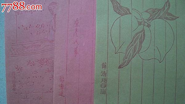 宋朝蘇易簡「文房四譜」中說:「唐薛濤尚斯色而好製小詩,惜其幅大不欲長賸之,乃命匠人狹小為之,蜀中才子既以為便,後減諸箋亦如是。」薛濤字洪度,浣溪自製深紅小彩箋,裁書供吟獻酬,時賢謂之薛濤箋。明朝屠隆在「考槃餘事」中亦說:「蜀妓薛紅度以紙為業,製小箋十色名薛濤箋,亦名蜀箋。」唐人最尚蜀箋,而蜀箋最尚雜色。