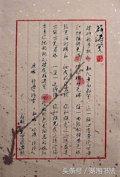 第一個讓箋紙名聲大噪的是唐代薛濤。錢梅溪《藝能編》載:“書箋花樣多端,大約起於唐宋,所謂衍波箋,浣花箋,今皆不傳。” 正是薛濤發明了浣花箋。