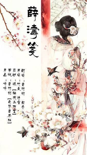薛濤(約768~832年),唐朝女詩人。其父為宮廷樂官,安史之亂入蜀逃避戰禍,定居成都。薛濤幼年喪父,生活無著,落入娼籍。