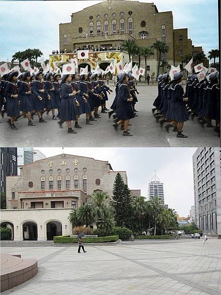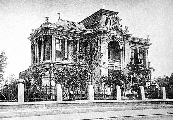 上圖為1940年代李火增拍攝1936年落成的臺北公會堂,為日本時代建築師井手薰作品(原圖黑白+數位上色)