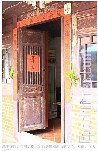 端午節時,台灣老街老宅插著驅邪避凶的艾草、菖蒲。(大紀元)