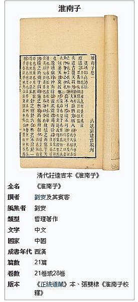《淮南子》(又名《淮南鴻烈》、《劉安子》),西漢皇族淮南王劉安及其門客集體編寫的一部哲學著作,雜家 [1] 作品。