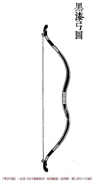 「黑漆弓圖」,出自《古今圖書集成‧經濟彙編‧戎政典‧第二百七十三卷》。(公有領域)
