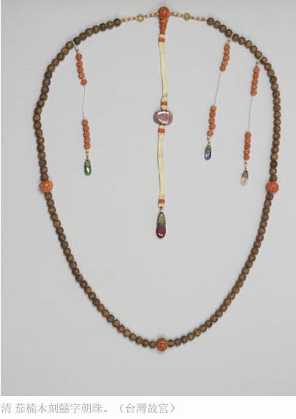 清 茄楠木刻囍字朝珠。(台灣故宮)