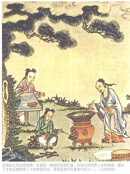 菩薩演化的這場磨難,也像是一個無形的煉丹爐,好熔化掉他們心中的雜質。圖為《本草品匯精要》之修事雲母法。雲母是煉丹的重要材料之一。(公有領域)