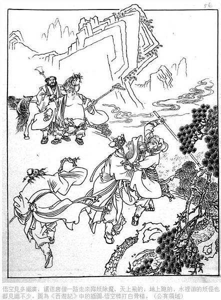 悟空見多識廣,護送唐僧一路走來降妖除魔,天上飛的,地上跑的,水裡游的妖怪也都見識不少。圖為《西遊記》中的插圖-悟空棒打白骨精。(公有領域)