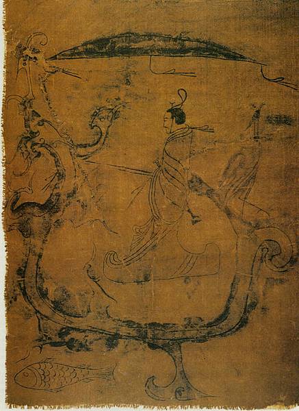 《帛畫人物御龍圖》,推斷為戰國中期繪畫。(公有領域)