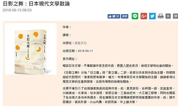 「目前台灣讀者雖能接觸大量的日本近代乃至現代文學經典的譯作,但是卻缺乏系統性的文學史以及文學評論的引介,《日影之舞》正可說是為台灣貧瘠的日本文學評論注入了新血。」——吳佩珍(國立政治大學台灣文學研究所副教授)