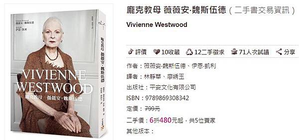 1.《龐克教母 薇薇安‧魏斯伍德》,薇薇安‧魏斯伍德、伊恩‧凱利著,平安文化