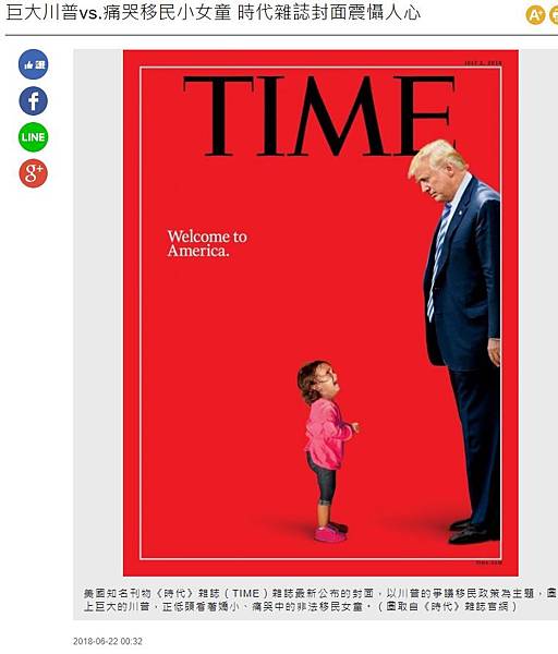 分享巨大川普vs.痛哭移民小女童 時代雜誌封面震懾人心到Facebook 分享巨大川普vs.痛哭移民小女童 時代雜誌封面震懾人心到Line 分享巨大川普vs.痛哭移民小女童 時代雜誌封面震懾人心到Google+