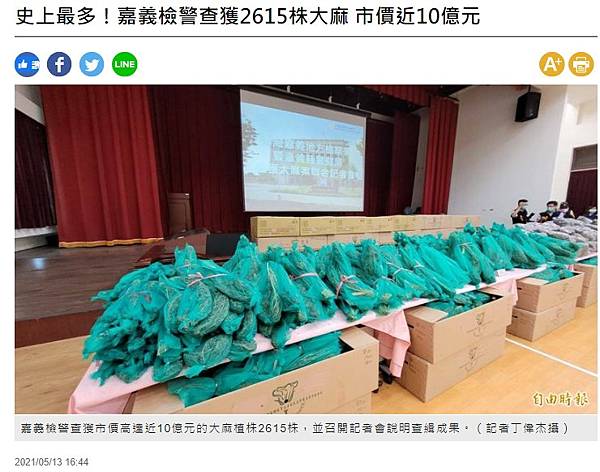 史上最多!嘉義檢警查獲2615株大麻 市價近10億元 - 社會 - 自由時報電子報 https://bit.ly/3hpkxNQ