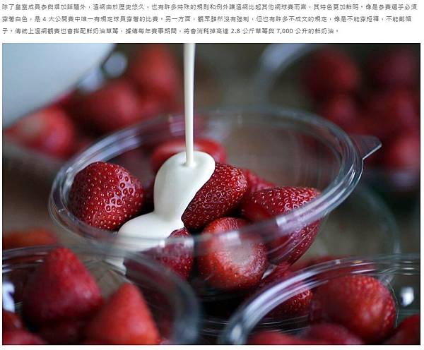 對於比賽觀眾,草莓配奶油是他們在觀看比賽期間的傳統零食。此外,觀眾不能穿著短褲,因為被認為不禮貌;也不能戴帽子,因為這樣可能阻礙後排觀眾的視線。