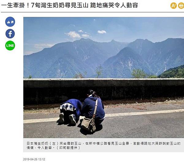 分享一生牽掛!7旬灣生奶奶尋見玉山 跪地痛哭令人動容到Facebook 分享一生牽掛!7旬灣生奶奶尋見玉山 跪地痛哭令人動容