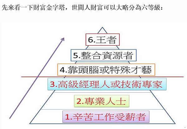 先來看一下財富金字塔,世間人財富可以大略分為六等級: