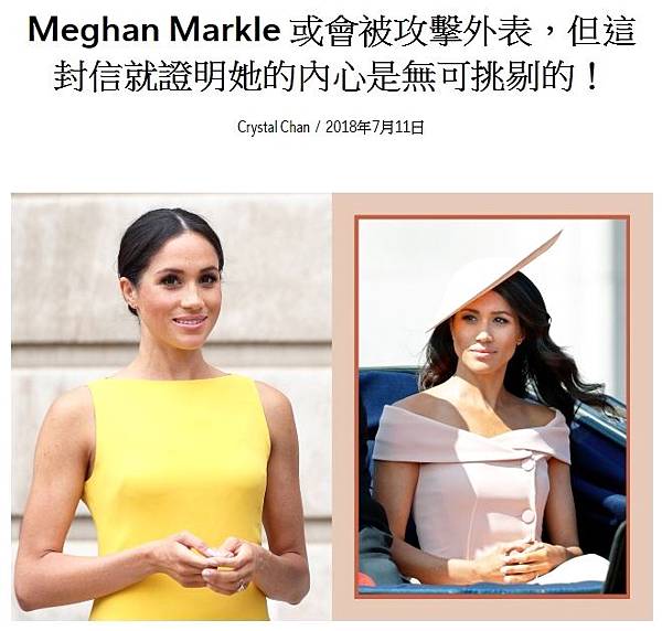 Meghan Markle 從成為了「哈里王子未婚妻」開始,生活的一切都暴露於大眾的目光下,不論是衣著打扮、妝容髮型、或是跟家人的相處,都成為了別人評論的題材。被視為喜歡打破皇室規條的她,衣著經常引起爭議,很多人都批評她沒有王妃的氣質,甚至將她拿來跟凱特王妃比較。