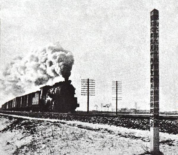 昭和6年(1931)9月18日918事變,南滿鐵路柳條溝路段日軍豎立之事件木樁舊照-「昭和六年九月十八日支那兵線路爆破地點」