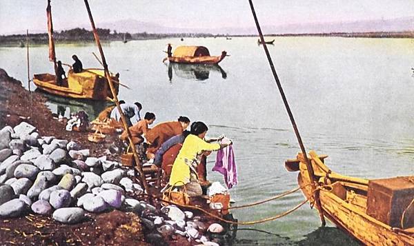 日治時期淡水河畔洗衣婦女舊照