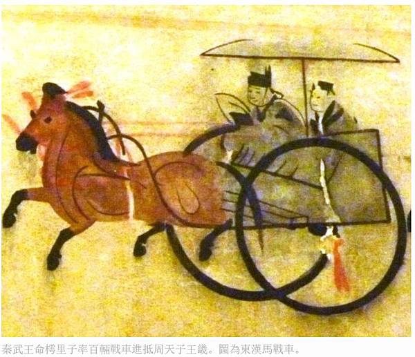 秦武王命樗里子率百輛戰車進抵周天子王畿。圖為東漢馬戰車。
