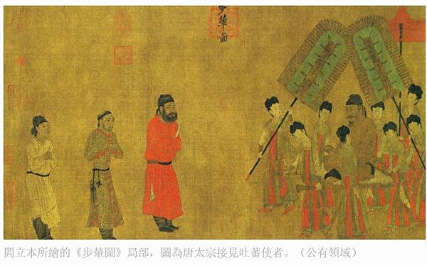 閻立本所繪的《步輦圖》局部,圖為唐太宗接見吐蕃使者。(公有領域)