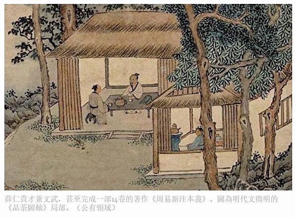 薛仁貴才兼文武,甚至完成一部14卷的著作《周易新注本義》。圖為明代文徵明的《品茶圖軸》局部。(公有領域)