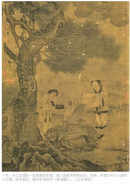 一天,徐上舍遇到一位熟識的老僧,僧人請他進祠裡坐坐。這時,有個大約七八歲的小沙彌,端茶奉客。圖為宋 劉松年《醉僧圖》。(公有領域)