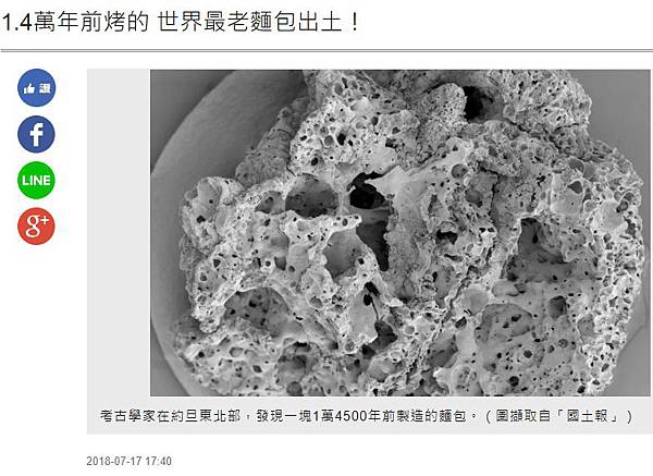 分享1.4萬年前烤的 世界最老麵包出土!到Facebook 分享1.4萬年前烤的 世界最老麵包出土!到Line 分享1.4萬年前烤的 世界最老麵包出土!到Google+