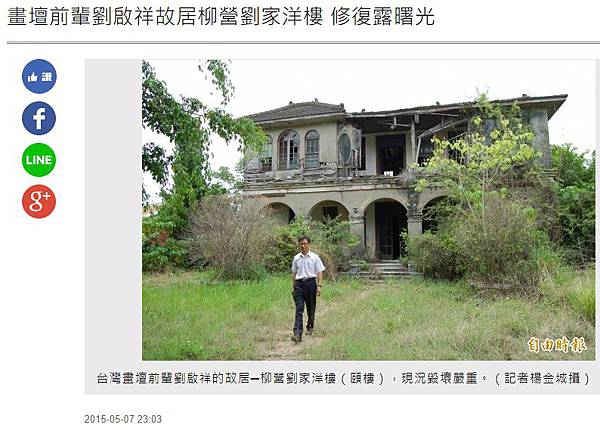 分享畫壇前輩劉啟祥故居柳營劉家洋樓 修復露曙光到Facebook 分享畫壇前輩劉啟祥故居柳營劉家洋樓 修復露曙光到Line 分享畫壇前輩劉啟祥故居柳營劉家洋樓 修復露曙光到Google+
