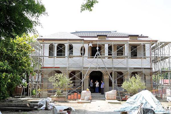 臺南市柳營區的劉家洋樓為臺南市知名旅日、旅法藝術家劉啟祥先生之故居,預計今(2018)年底修復完成,台南市長李孟諺及文化局長葉澤山前往視察。(圖/台南市政府提供)