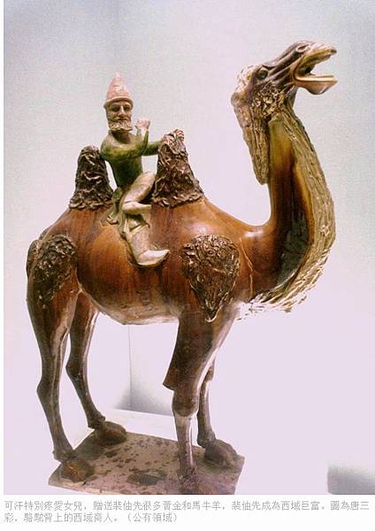 可汗特別疼愛女兒,贈送裴伷先很多黃金和馬牛羊,裴伷先成為西域巨富。圖為唐三彩,駱駝背上的西域商人。(公有領域)
