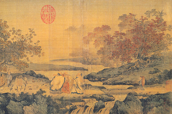宋朝《虎溪三笑圖》,畫中陶淵明、慧遠、陸修靜相聚廬山,象徵儒釋道三家和睦相處。(公有領域)